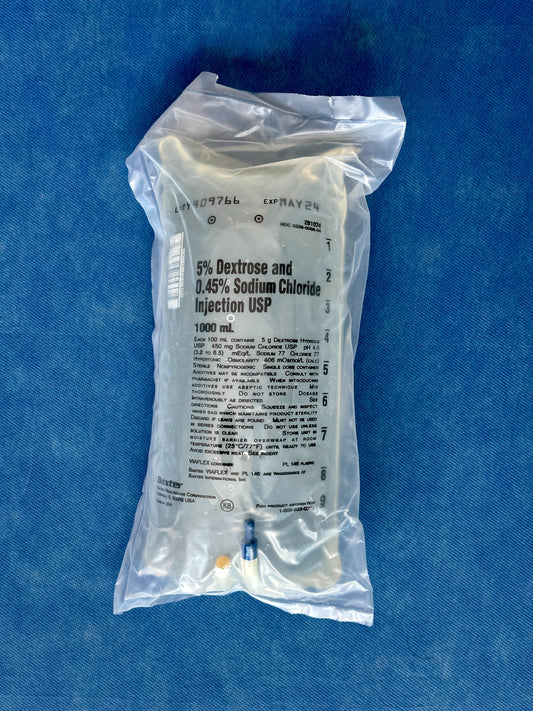 No Rx Required - IV Fluid Bag 5% Dextrose in 0.45% Sodium Chloride (D5 1/2 NS)